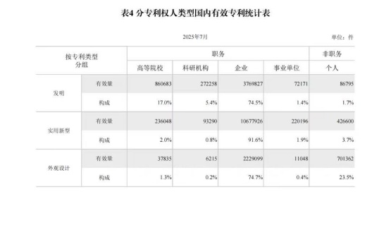 附:2025年7月国家知识产权局审查注册登记统计月报